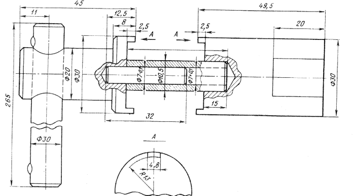 Внимание обращают на пружину 3 автоматического устройства. Ее размеры в свободном состоянии - 20 мм, а под нагрузкой (802±78,4) Н - 14 мм.